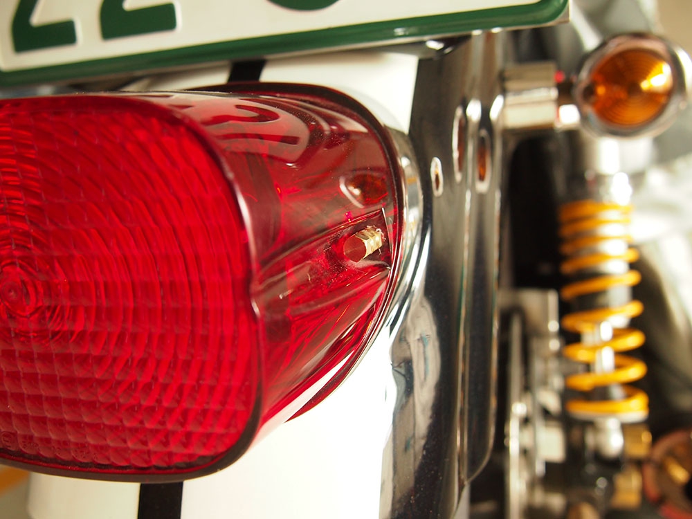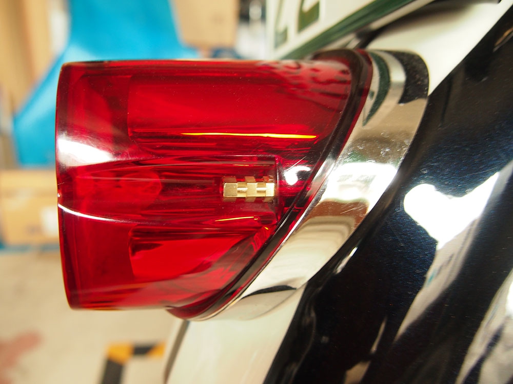 ナンバープレートを覆う高級感あふれるメッキベース。