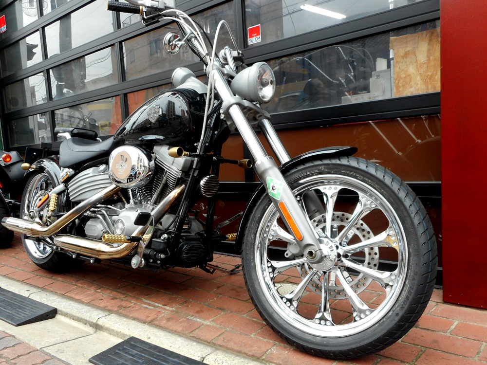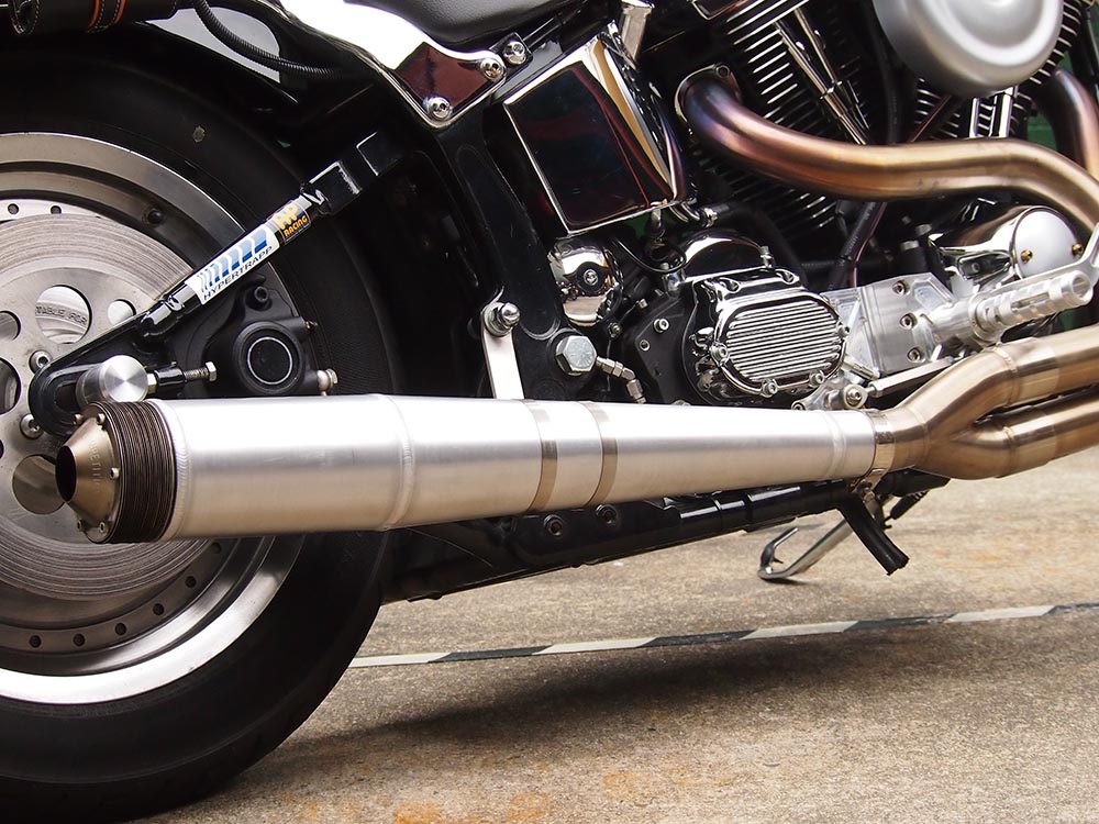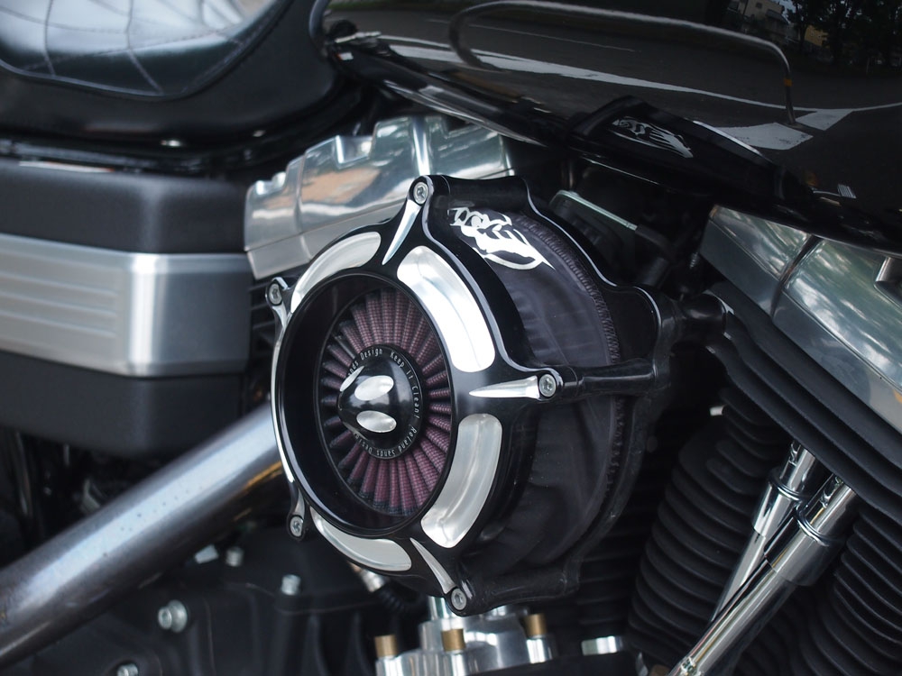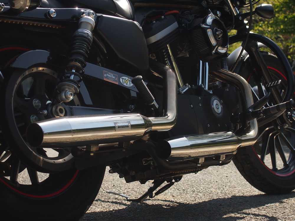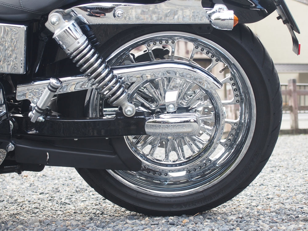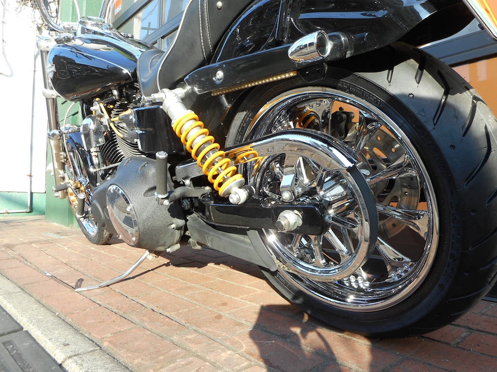 ・サンダンス ボマーエクゾースト・RSD タービンエアクリーナー・TwinTecTCFI3・サンダンス TrakTekフォークスプリング・サンダンス TrakTekステディアライメントトリプルヨーク・オーリンズ S36Eリアショック・本国仕様プーリースプロケット・K&Hシングルシート・ハーレー純正ヘッドライトカウル・リデュースリーチフォワードコントロール