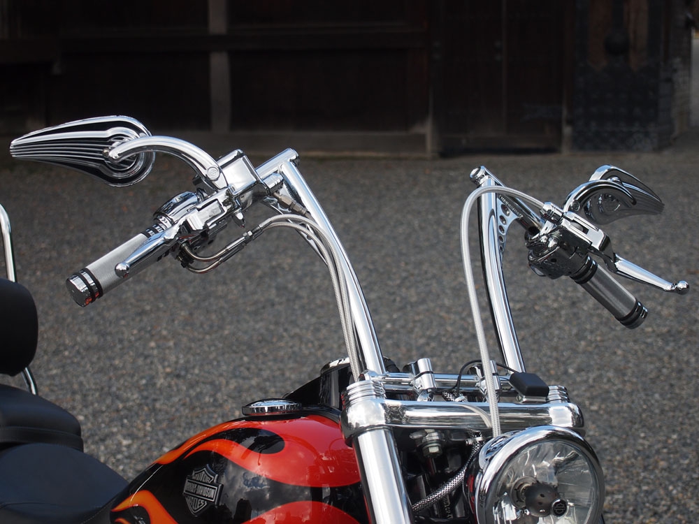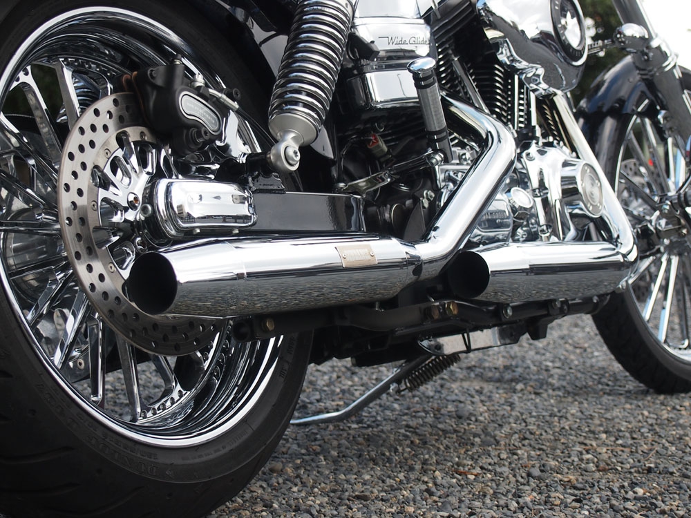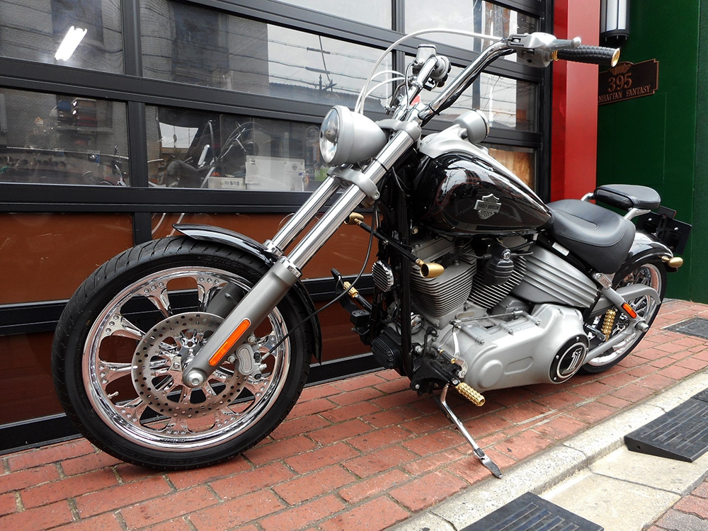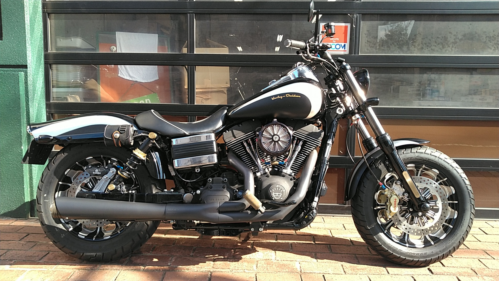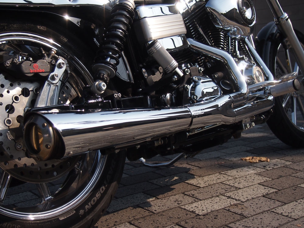 ・サンダンス ボマーエクゾースト・RSD タービンエアクリーナー・TwinTecTCFI3・サンダンス TrakTekフォークスプリング・サンダンス TrakTekステディアライメントトリプルヨーク・オーリンズ S36Eリアショック・本国仕様プーリースプロケット・K&Hシングルシート・ハーレー純正ヘッドライトカウル・リデュースリーチフォワードコントロール