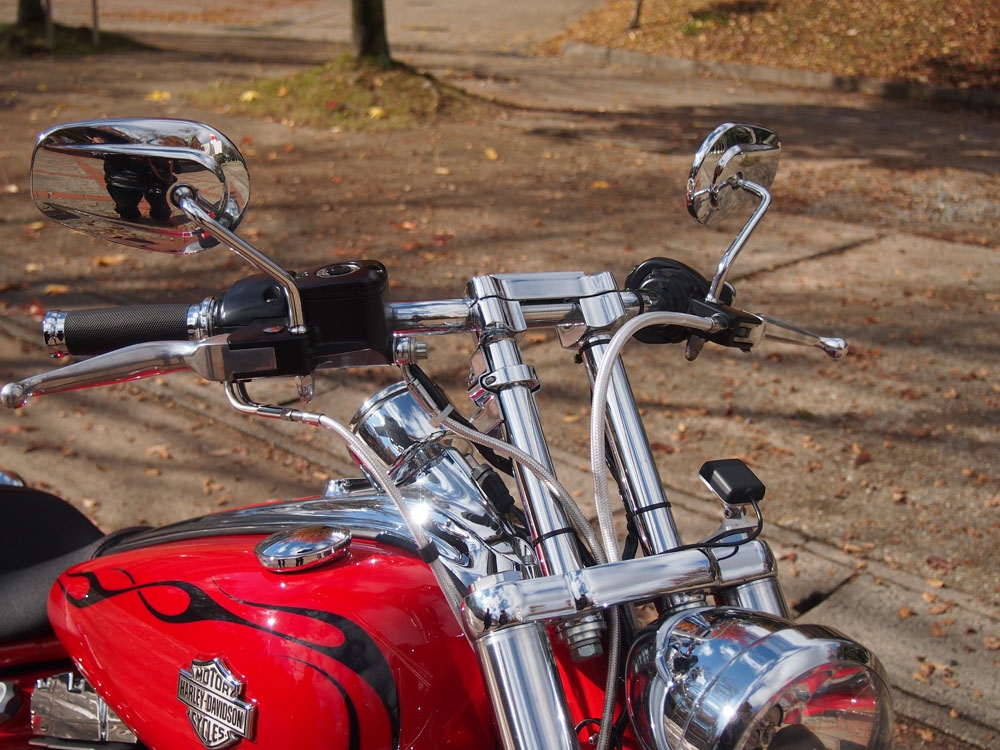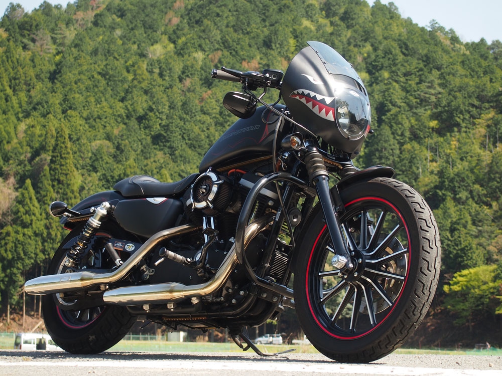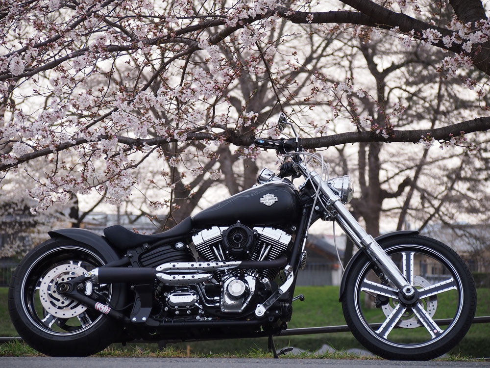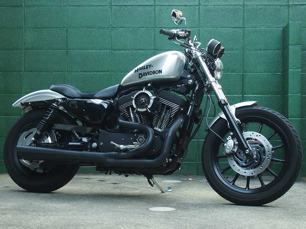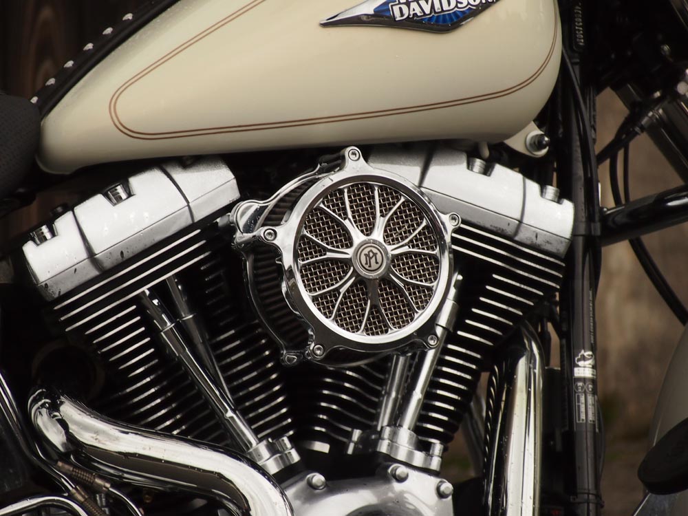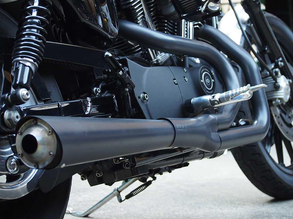 ・サンダンス ボマーエクゾースト・RSD タービンエアクリーナー・TwinTecTCFI3・サンダンス TrakTekフォークスプリング・サンダンス TrakTekステディアライメントトリプルヨーク・オーリンズ S36Eリアショック・本国仕様プーリースプロケット・K&Hシングルシート・ハーレー純正ヘッドライトカウル・リデュースリーチフォワードコントロール