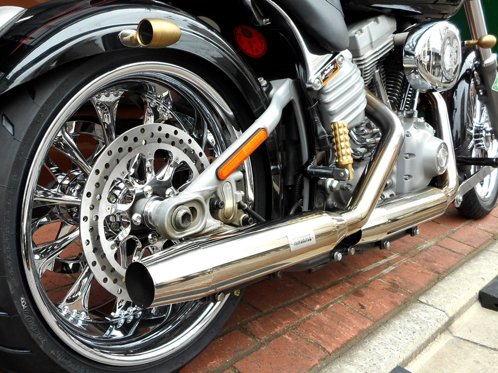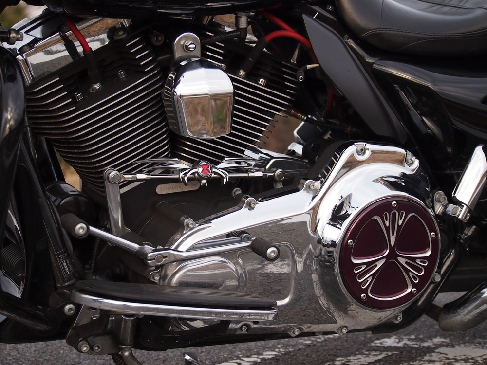 ・COBRA TRI-PRO2into1マフラー・TwinTecTCFI5・S&Sティアドロップエアクリーナー・サンダンス TrakTekフォークスプリング・サンダンス TrakTekリアホールディングスプリング・PM RIVIELA前後ホイール・リアタイヤ240mm→260mm・PM HOOLIGANロータースプロケット・オリジナルシングルシート