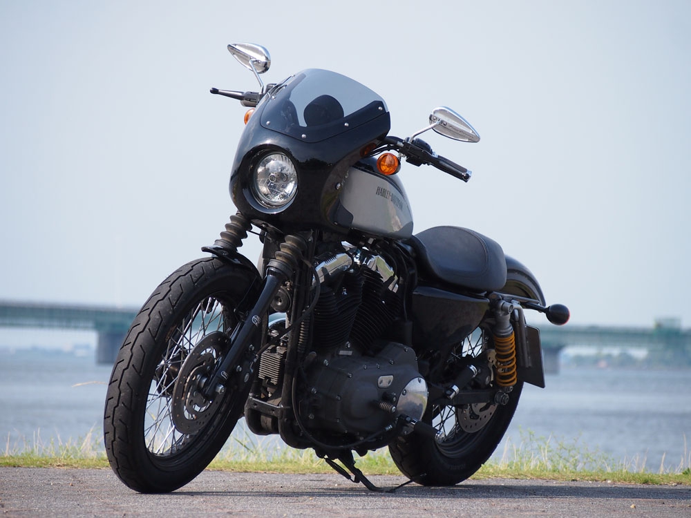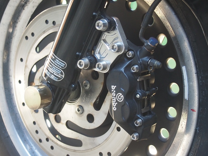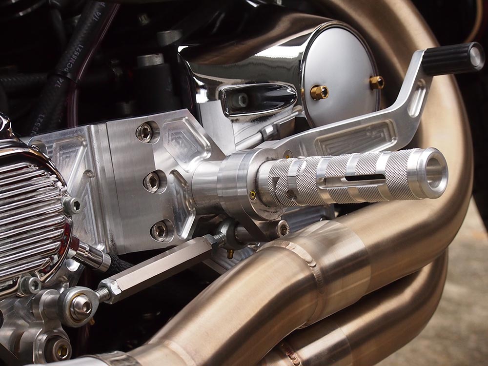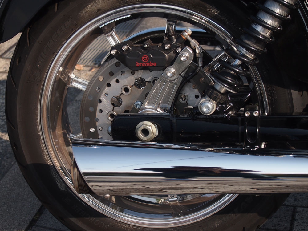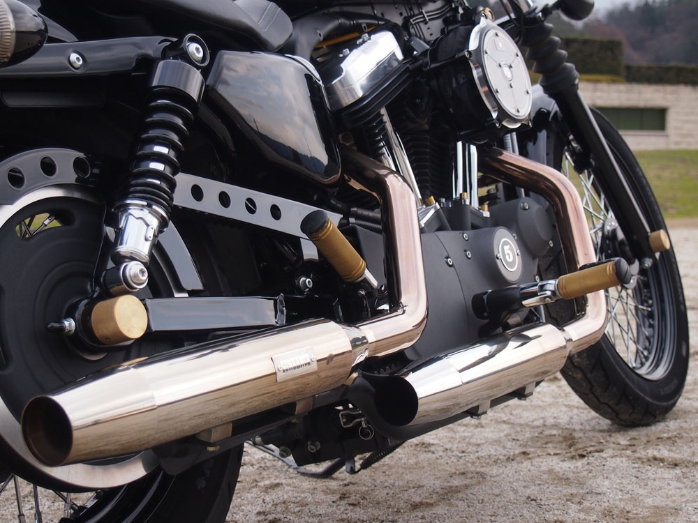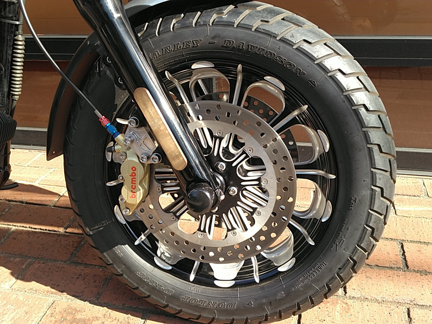・S&Sスラッシュカットスリップオンマフラー・TwinTecTCFI3・S&S ティアドロップエアクリーナー・サンダンス TrakTekフォークスプリング・オーリンズ S36DR1リアショック・ブレンボブレーキキャリパー・TNTオリジナルブラスウィンカー・ヘッドライト1灯・K&Hシングルシート・ブラスブレーキペダルパッド