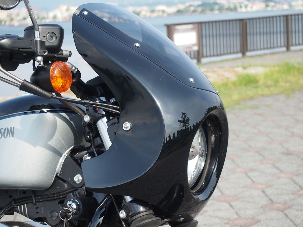 ・スーパートラップ4インチメガホン・ハイフローエアクリーナー・サンダンス TrakTekフォークスプリング・オーリンズ S36Eリアショック・Tramp サイドナンバーキット・SICKDESIGN ロケットヘッドライトカウル