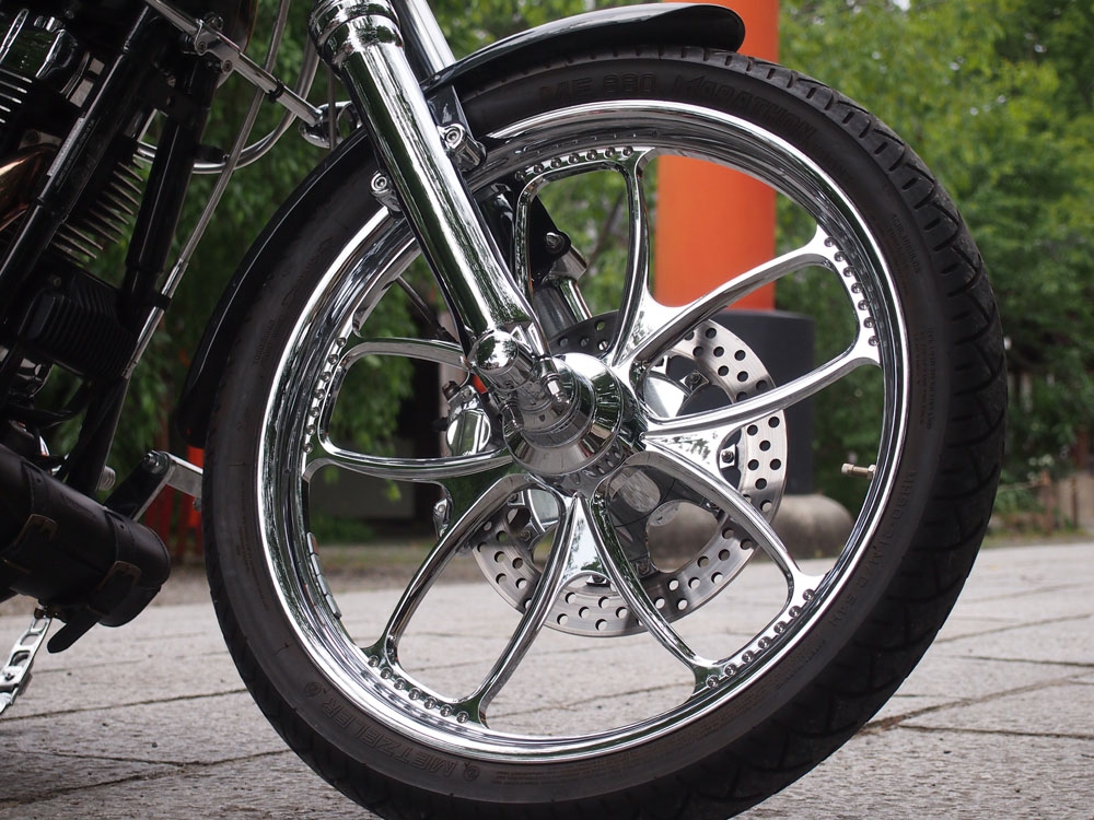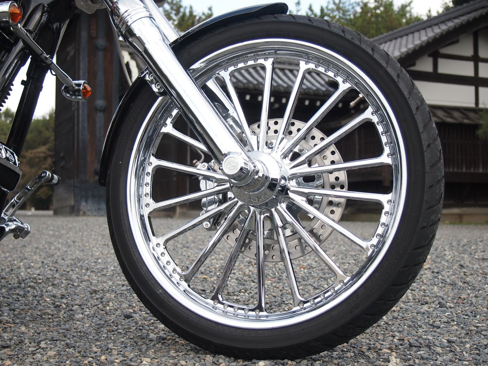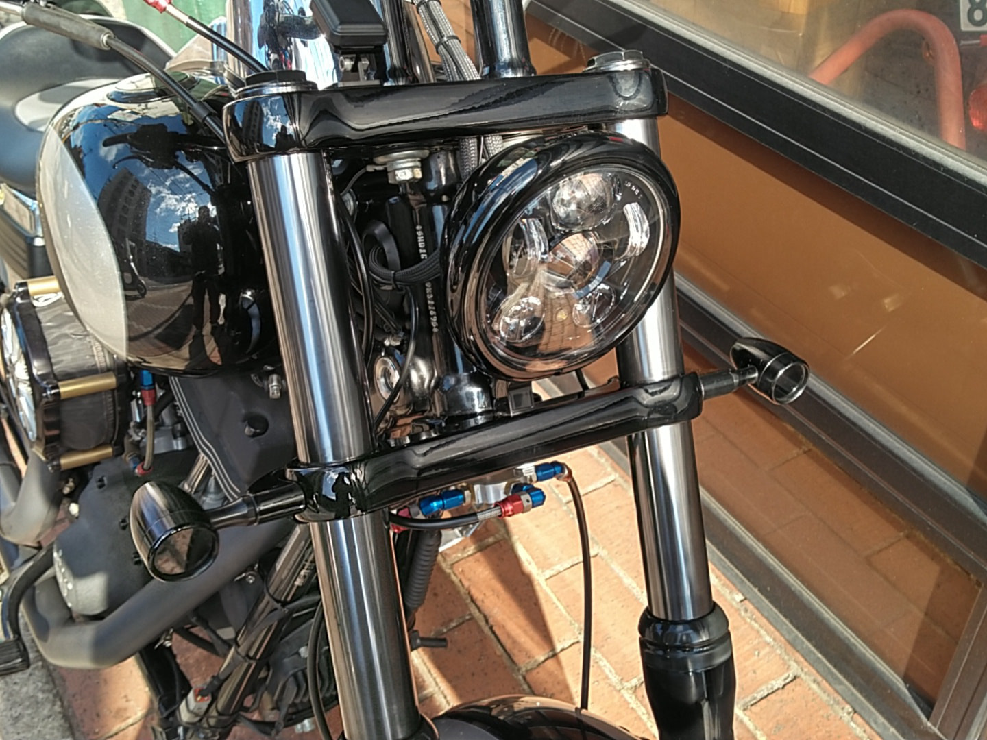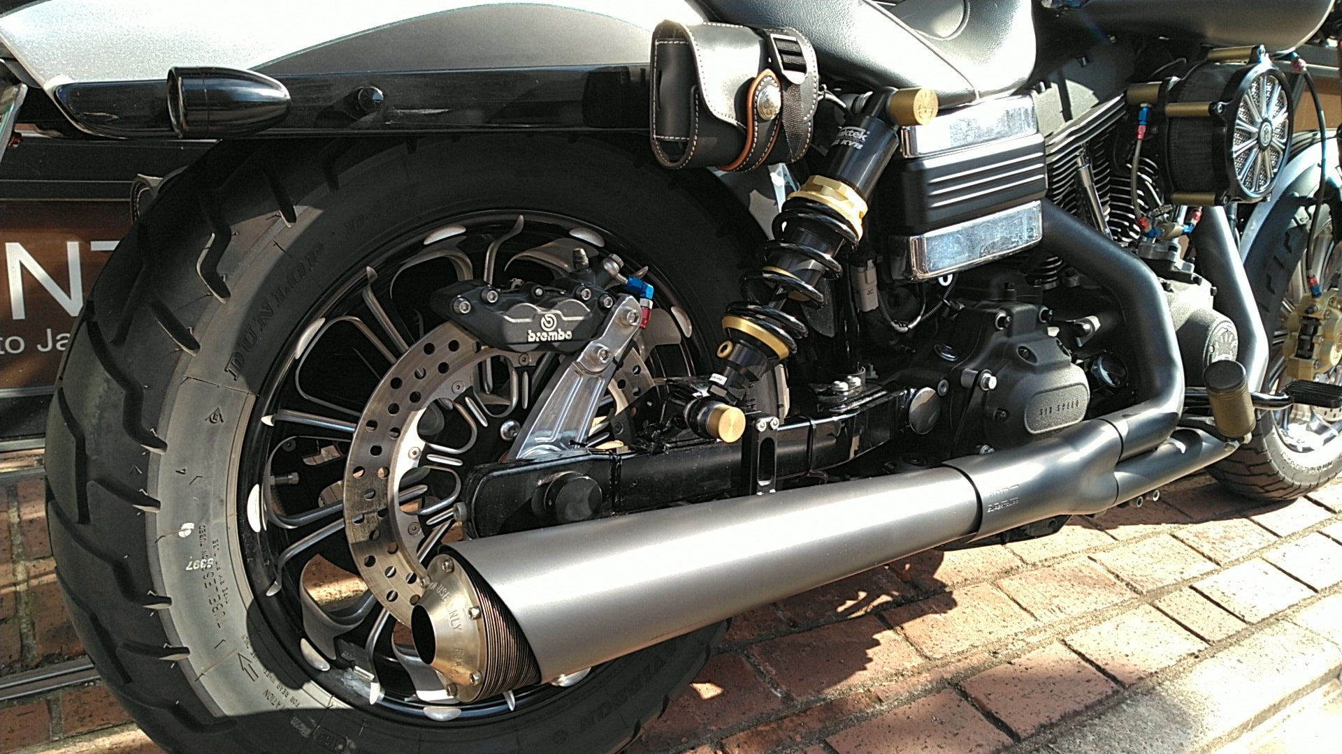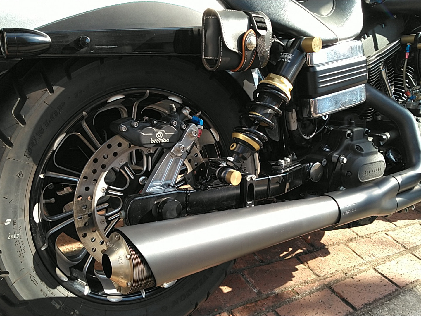 ・サンダンスボマーエクゾースト・TwinTecTCFI4・RSD タービンエアクリーナー・サンダンス TrakTekフォークスプリング・オーリンズ S36DR1リアショック・HOTDOCK ナイトイエガーシングルシート・GLIDE 前後ホイール・オリジナルリアフェンダー・ハーレー純正ヘッドライトカウル・MISUMI ドッグボーンライザー・RSD ヴィンテージショートハンドルバー・ブレンボブレーキキャリパー・PIAA フォグランプ