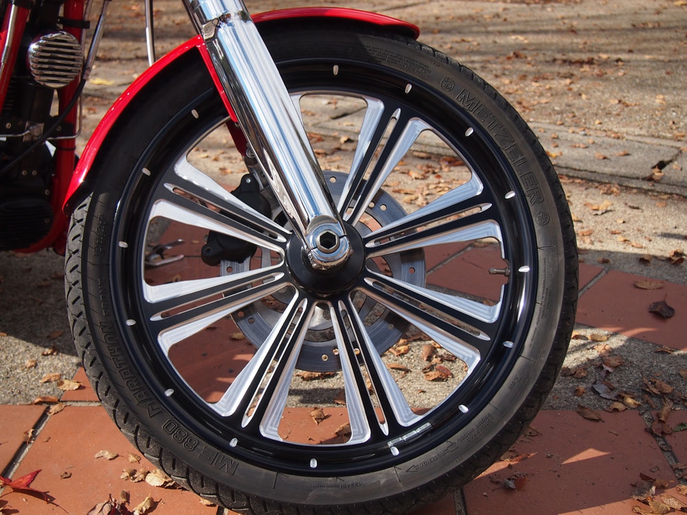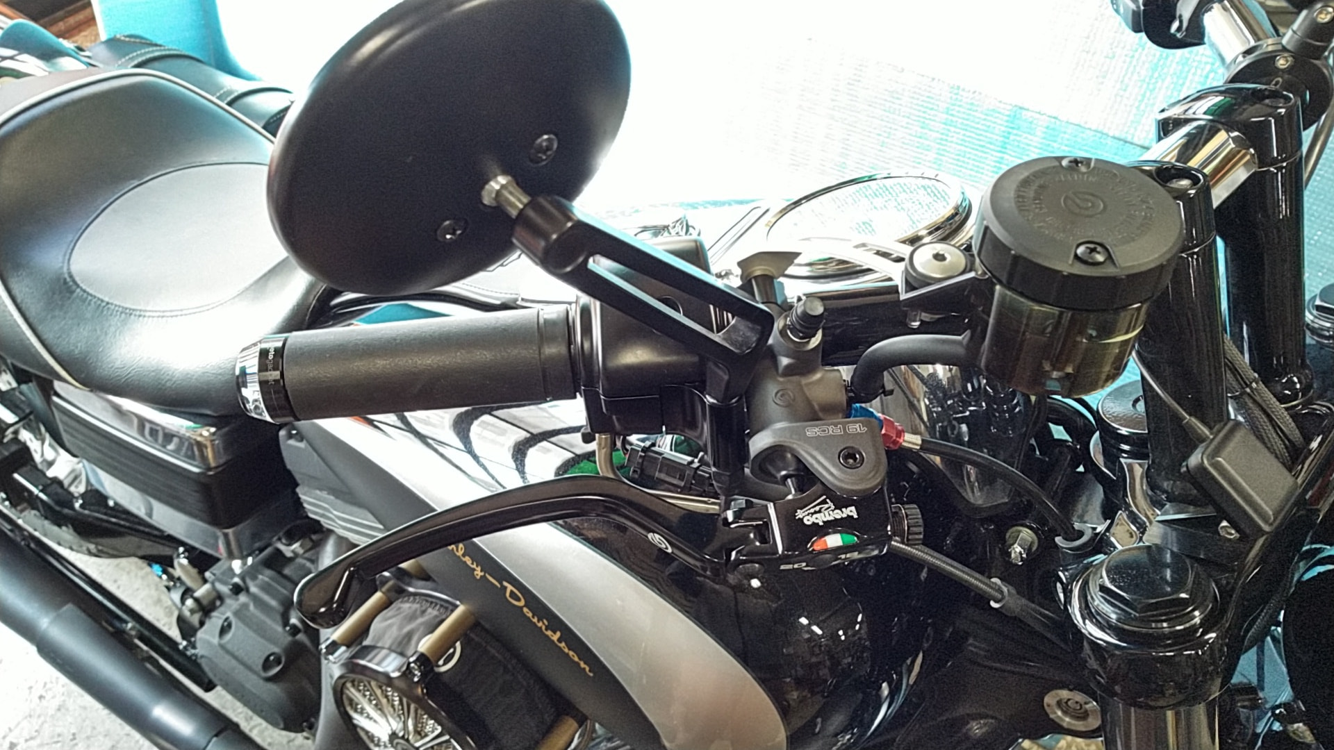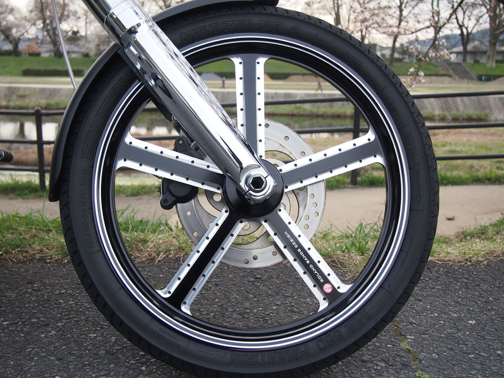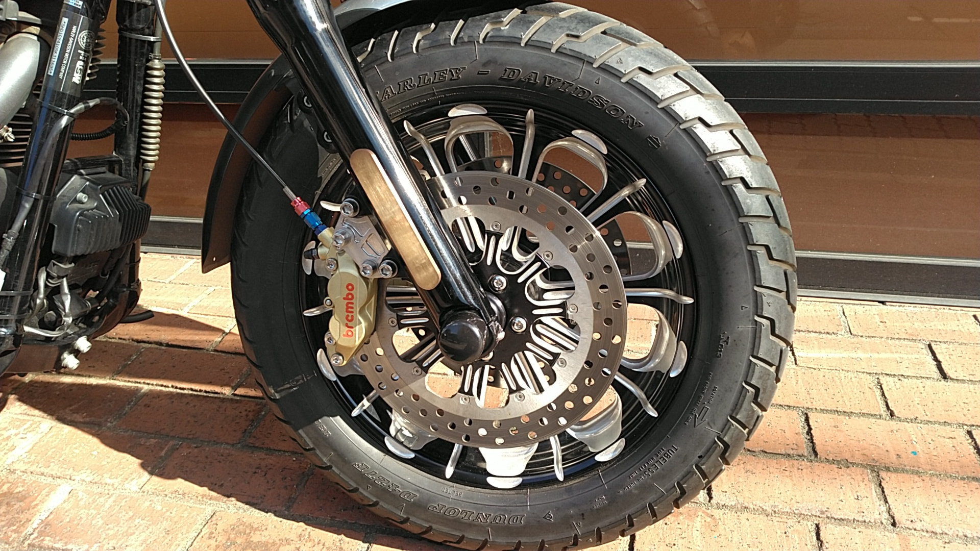 ・RSD トラッカー2into1トラッカーマフラー・TwinTecTCFI3・RSD タービンエアクリーナー・サンダンス TrakTekフォークスプリング・サンダンス TrakTekリアホールディングスプリング・RSD MISSIONホイール(フロントは19→21にインチアップ)、プーリースプロケット・リアタイヤ240mm→260mm・TNTオリジナルシート・グリップエンドウィンカー